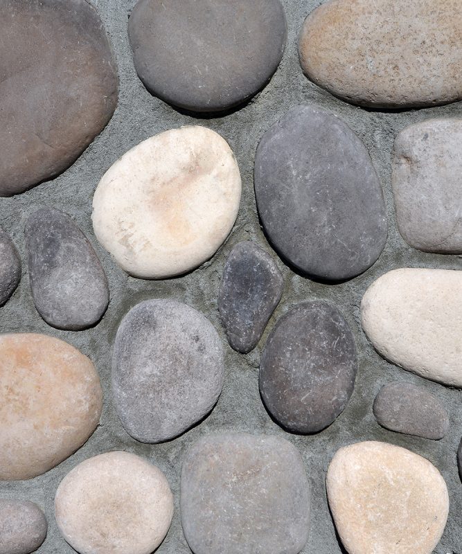 River serisi, doğal dere çakıllarının yuvarlak ve yumuşak formlarını birebir yansıtan tasarımıyla sade ama çok şık bir görünüm sunar. Gri, bej ve krem tonlarındaki taşların rastgele dizilimi, duvar yüzeylerinde gerçek bir nehir yatağı etkisi oluşturarak mekâna ferahlık ve doğallık katar.